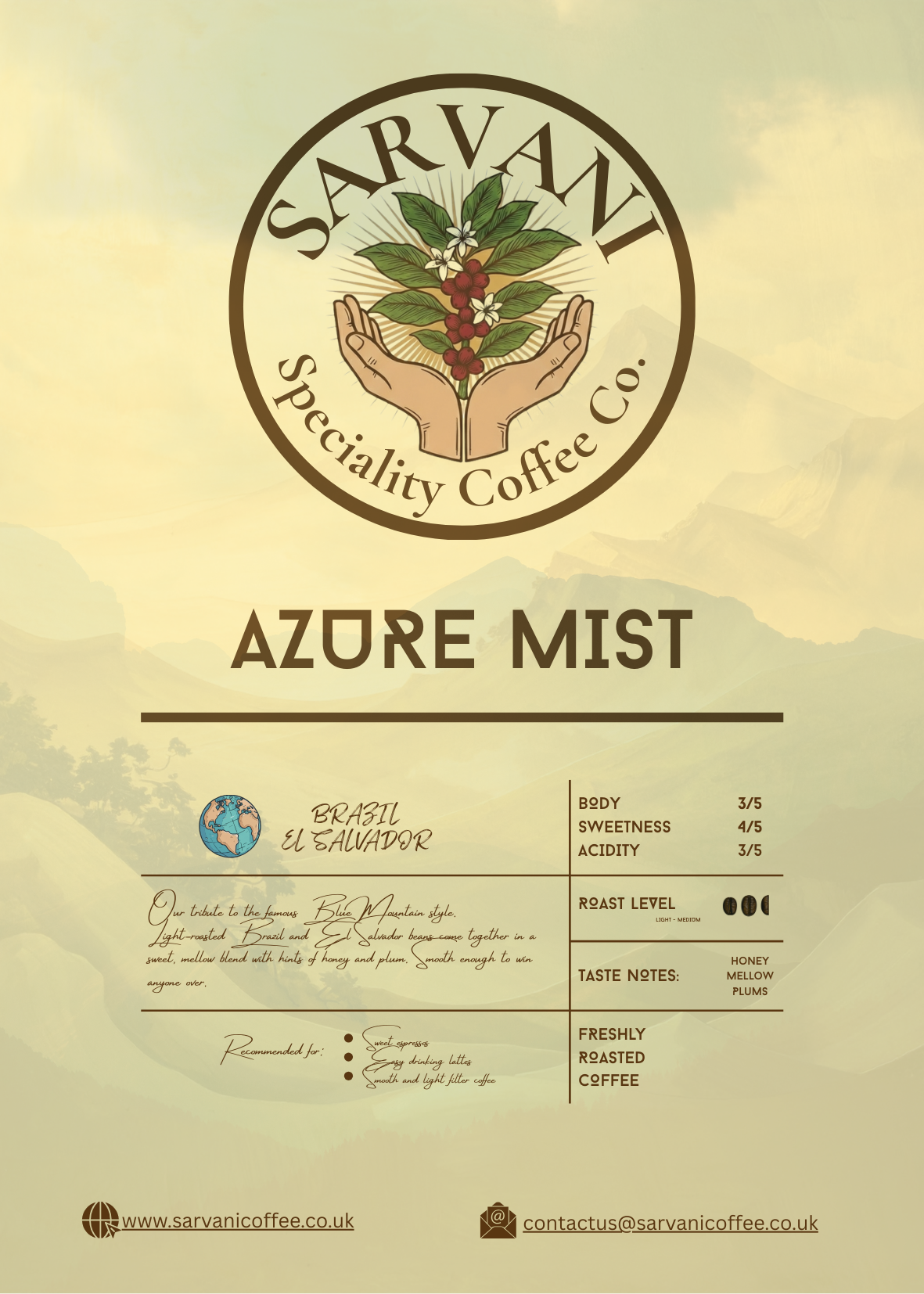 Light-roasted Brazil and El Salvador beans come together in a sweet, mellow blend with hints of honey and plum. Smooth enough to win anyone over.